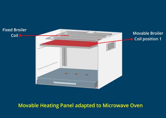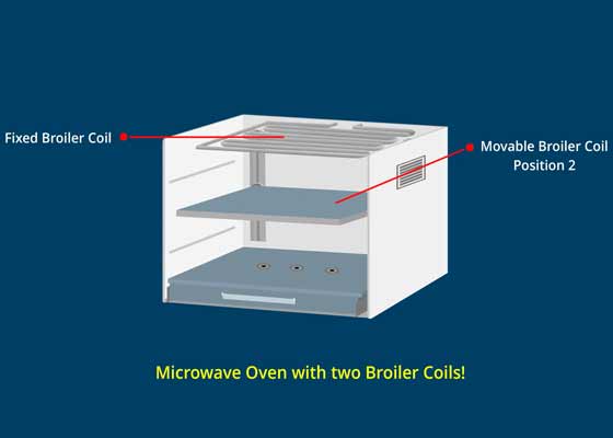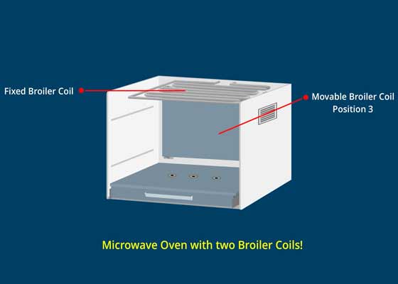 An additional Broiler Coil is added to the Microwave Oven just under the Fixed Broiler Coil. It can be positioned in the middle or against the back wall.