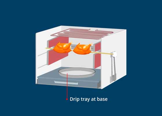 The full cavity of the oven can also be used to roast a full chicken on the rotisserie.